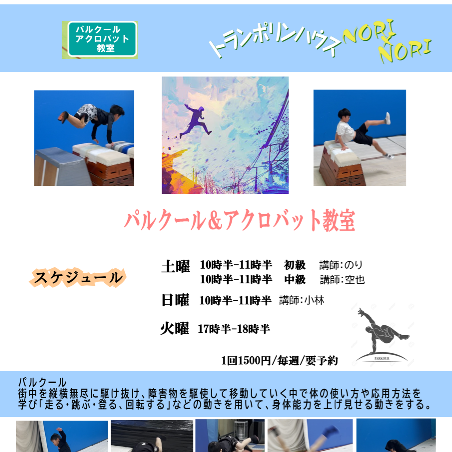 パルクール教室 | バク転教室 | トランポリン教室 | |||||